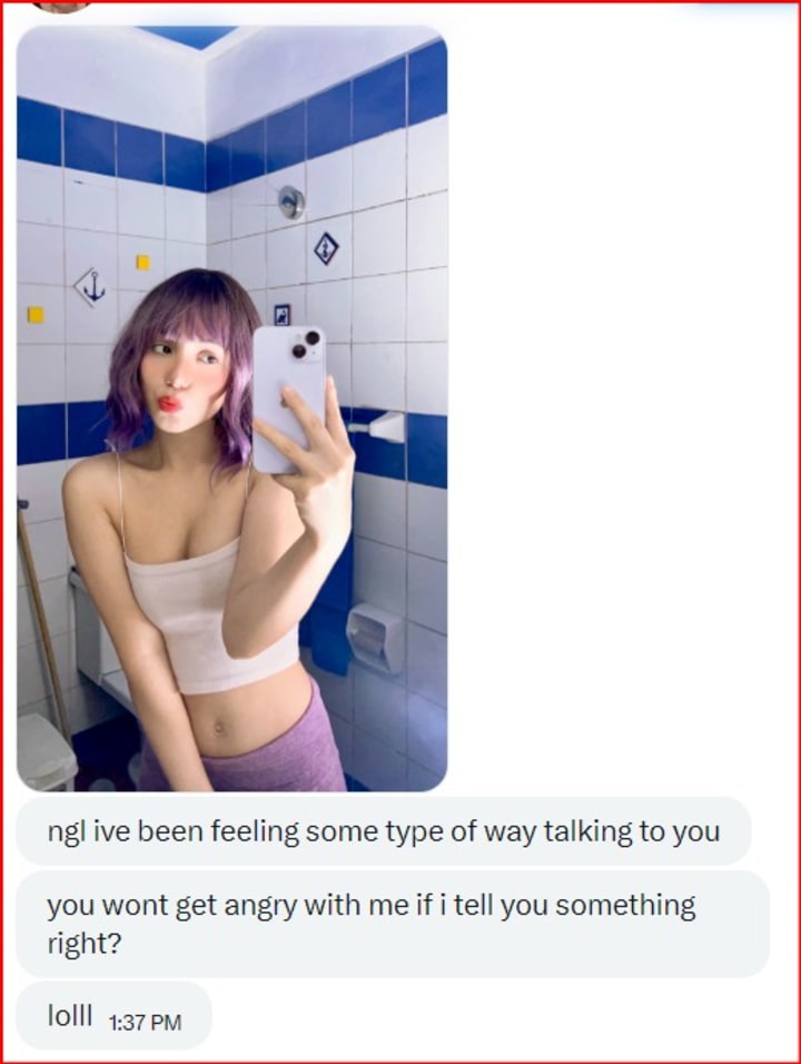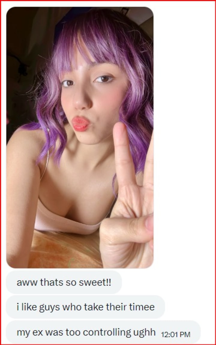 Looking back, I can see how carefully the emotional hooks were placed. At the time, it just felt like two people opening up. She shared that she had struggled with depression and anxiety, and that Twitter (X) was one of the few places she felt safe expressing herself. She hinted that most people in her life did not "get it," but that she liked how I listened and responded without judging.